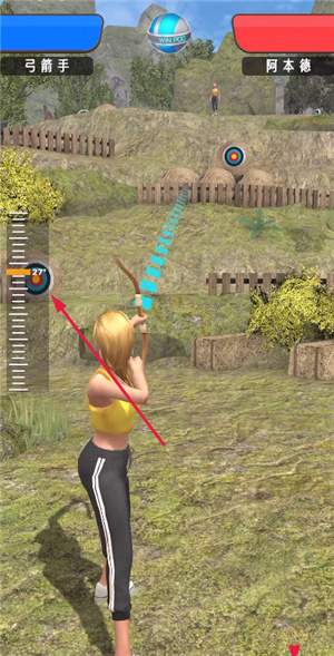 2、松手即可发射弓箭,然后就能看到弓箭射中的位置,下次就能灵活调整。