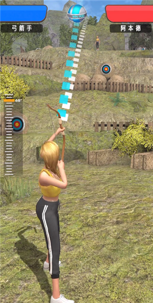 化身为射箭大师,点击按钮开始匹配、滑动控制射击轨迹和角度,使箭击中对手,夺取胜利!当回合未耗尽时,若对手生命值清零可获得胜利,若我方生命值清零则失败,回合数耗尽则比较双方生命值,较多的一方获胜。成为真正的箭神,让箭矢的歌声划破天际!