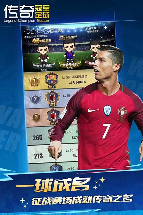 传奇冠军足球九游版是一款体育足球游戏,游戏中有着需要明星球员。游戏内玩家将扮演一名足球经理,你可以招募各种球员,自由组合强力阵容,制定战术获得比赛胜利。对此类游戏感兴趣的玩家不要错过,赶紧点击下载开始游玩吧。
