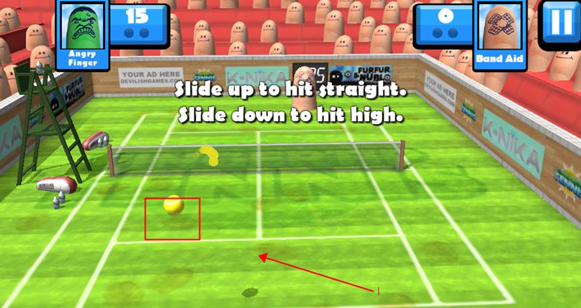 滑动手指来击球或削球。本游戏提供了一系列独特的球员可供选择;