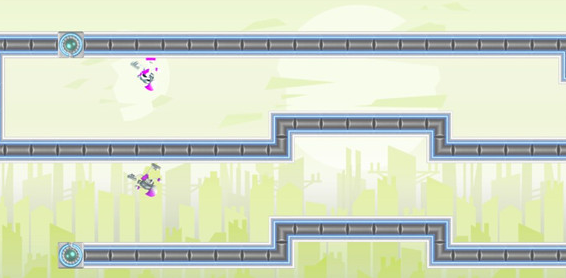 1、点击屏幕任何位置即可翻转重力帮助你控制的小人躲避障碍物;
