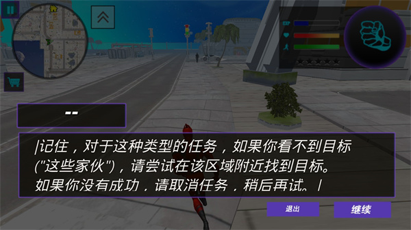 3、进入游戏后我们可以看到左上角有一个小地图,我们往绿色标里面走;