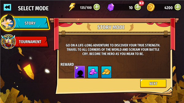目前一共提供战斗模式、团队战斗模式、锦标赛、pvp等模式,可以完成章节任务解锁更多人物,并升级培养提升战斗力,帮助你在各模式中大放光彩。