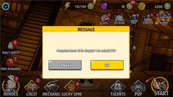 7、完成10章节即可开启pvp模式。
