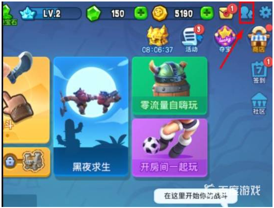 1、首先,打开野蛮人大作战手游,在页面上方点击按钮,如图所示。