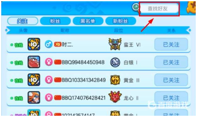 3、打开找朋友界面,输入好友id可以加指定的好友,如图所示。