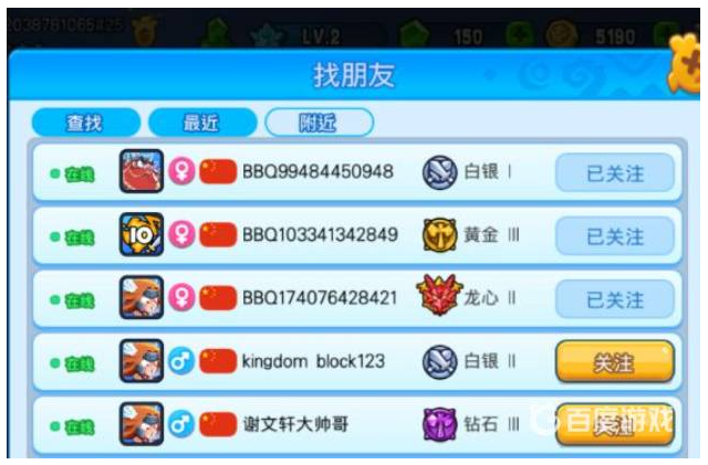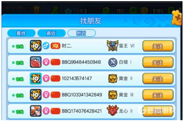 4、如果想随便加几个人一起玩,那就在最近或者附近界面中添加,如图所示。