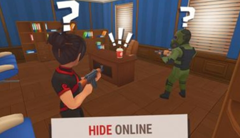 Hide Online(躲猫猫)是一款非常流行的道具狩猎类型,令人上瘾且兴奋的多人捉迷藏动作射击游戏。游戏采用了欧美卡通画风的场景,作为躲藏方玩家需要进行隐身和环境融合起来,躲避攻击方的追杀,在规定的时间内还存活即可获胜。玩家躲在任何房间的其他玩家面前成为道具,或尝试逃脱,只需交换即可成为任何种类的隐藏对象。