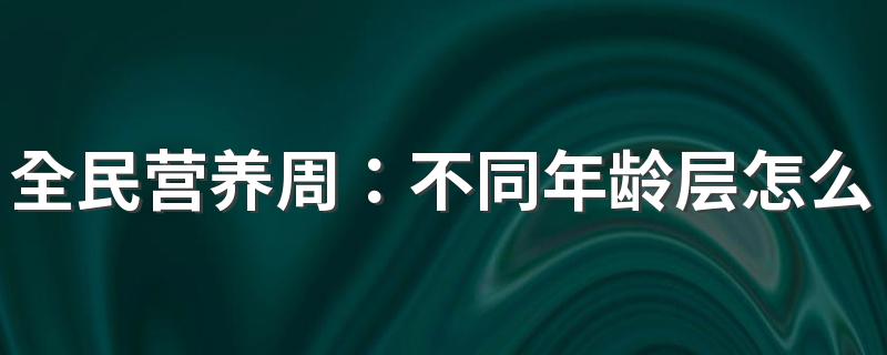 全民营养周:不同年龄层怎么吃才能提高免疫力?