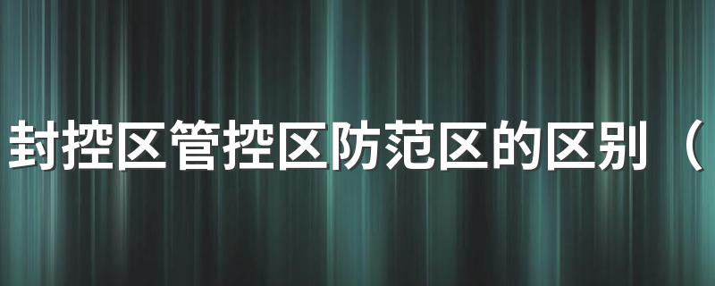 以上就是关于封控区管控区防范区的区别对比介绍,大家看完应该对这三个区域划分有所了解吧,更多的疫情消息关注本站分享。