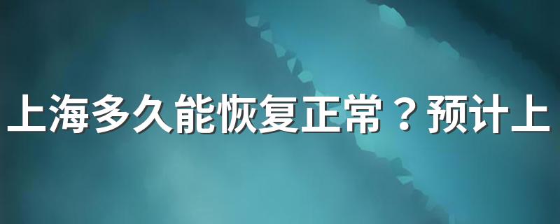 以上就是关于上海多久能恢复正常的相关条件介绍,从目前的情况来看四月中旬上海疫情可能出现拐点,具体关注官方消息。