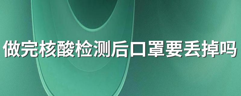 大家在排队做核酸检测时都是待着口罩的,如果发现口罩被污染了,一定要及时处理好,不用二次利用,那么,做完核酸检测后口罩要丢掉吗?做核酸时口罩究竟该怎么摘?下面小编就带来介绍。