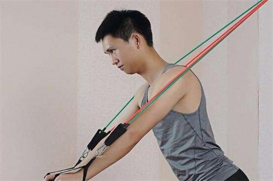 也可以采用俯身半蹲划船式的动作,主要将弹力绳规定要一定高度处的位置上,人处于下蹲的姿势,上半身保持平直,还要稍微的前倾,将双手握住弹力绳后向下拉伸,双腿张开后固定为主,这样是主要锻炼斜方肌,肱三头肌为主。