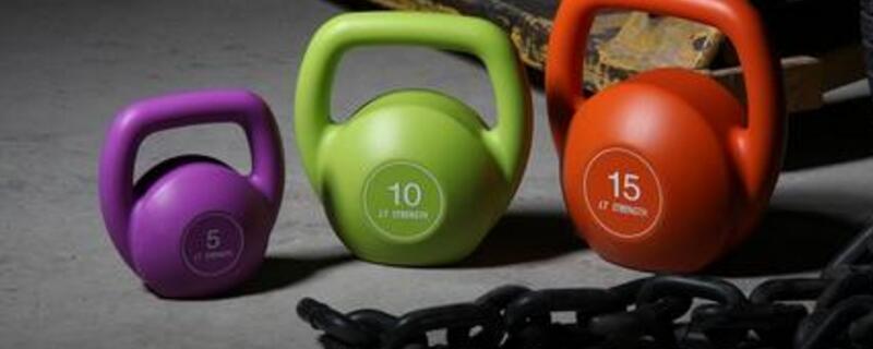 壶铃是一种常见的健身器材,第一个动作是壶铃深蹲,主要握住壶铃的把手,将双脚翻开深蹲,直到臀部与膝盖和肘部的内侧保持平行的状态,之后站起来,第二个动作是俯卧撑高拉,主要是练习腿部和肱二头的肌肉力量。