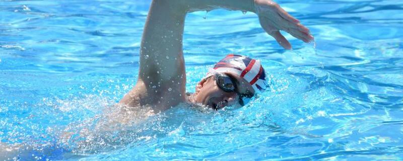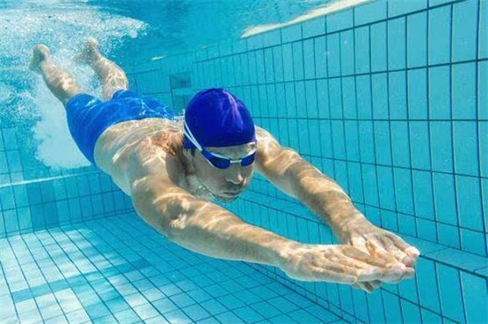 游泳是一项比较健康的运动项目,当再跳水前最好最好准备动作,此时头部要稍微的抬起,当听到信号的时候,两手臂向上提拉,身体的重心要及时的前移,膝关节稍微的弯曲,接着两手松开后,两手臂及时的摆出。