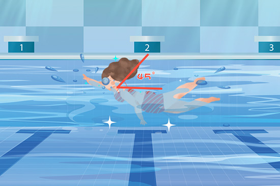 随下水次数的增加,划水动作以及身体侧转的熟练,能够让换气变的更加的容易,此时我们可以将目标定的更加实际些,在转头换气的时候,下巴挨着肩膀头,看向斜后上方45度左右,这样能够顺利换气。