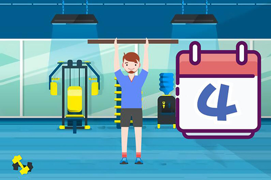 引体向上练习时需垂直悬挂,身体跳起来以正手握住单杠,双脚离地,每组4~6次,每次4组。使用身体划船时,可以找一条高度在腰部的单杠,脚跟着地,挺胸收腹,收紧肩胛骨,每次做4组,每组10~15下。