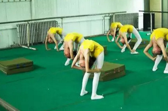 下腰训练可以锻炼腰部的柔韧性,将双腿岔开,分成大八字,身体站直,双臂举过头顶,指尖率先向后,慢慢将上半身向后仰,直至手部触地。刚开始做下腰的动作时,可以借由他人的力量,直到自己可以单独下腰。