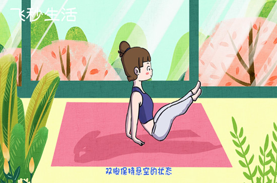 坐姿卷腹的动作需要让坐在地垫上,双手撑于身体两侧,腹部收紧,双腿伸直并拢,双脚保持悬空的状态,再将膝盖反复向上提,让膝盖尽量向下颚靠近。