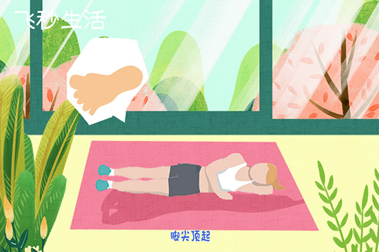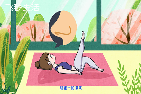 腿部环绕动作需要先让身体平躺在地垫上,双腿甚至并拢,双臂放于身体两侧,一条腿向上直立,另一条腿膝盖弯曲,腹部肌肉收紧,腰背紧贴于地面,将举起的腿在空中划圈并吸气,划完一圈呼气,重复以上动作即可。