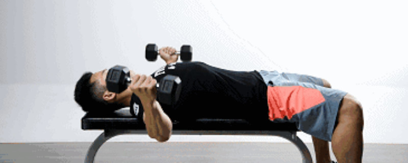训练完胸肌的拉伸动作,先面部朝上平躺在木马椅上,让自己的头部、背部、臀部都紧贴在椅子上,然后双手水平张开,手上可以拿两个轻型哑铃,而后将伸直的手臂向内一起合拢,直到两个哑铃碰到一起为止,然后再轻轻放下,如此重复即可。