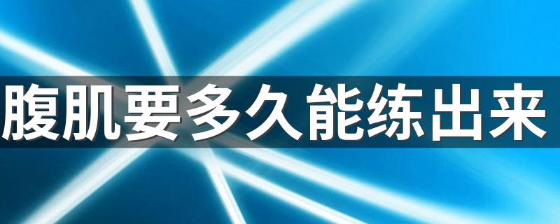 练腹肌所需的时间是比较长的,每天坚持锻炼至少需要2个月的时间,可以看到明显的效果,每天的运动可包括卷腹、仰卧举腿、悬垂式举腿、平板支撑等,每个动作每组最少做20个,一天做3组,连续2个月的时间可锻炼出腹肌。