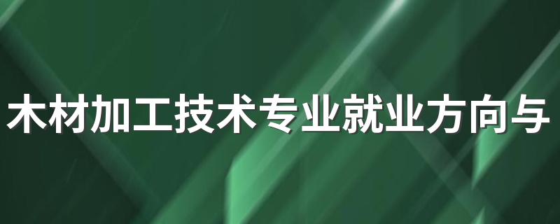 本专业毕业生可进入木材加工、人造板加工、家具制造、木材加工机械制造企业以及其它科研、设计和教学单位从事木材加工工艺的设计、管理、科研与教学工作。木材加工技术专业主要去向为木材机械加工、木质材料应用与制造。木材加工技术专业面向木材加工领域的技术与管理部门。