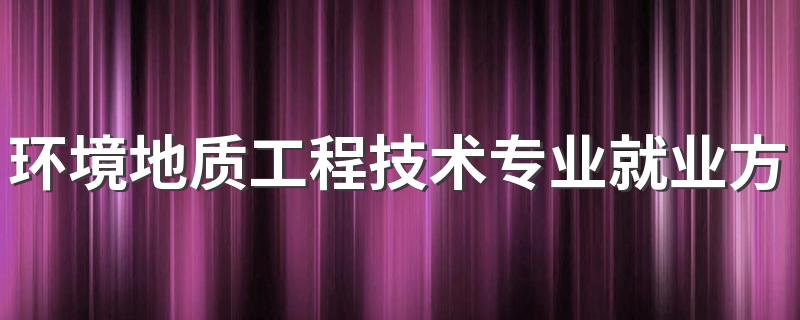 环境地质工程技术专业毕业生可在地勘、环境、国土、交通、铁路、水利、电力等行业中从事地灾调查、评估、治理及在环境监测部门从事管理与地灾预报等。环境地质工程技术专业可从事的工作岗位包括环境地质、地质灾害、水文地质、工程地质、岩土工程勘察、地质调查、地质制图及数据库建设等方面的技术与管理岗位。