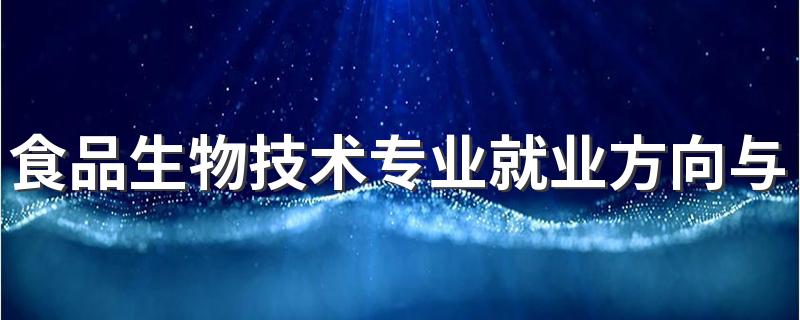 高考填报志愿时,食品生物技术专业就业方向有哪些以及就业前景怎么样是广大考生和家长朋友们十分关心的问题,以下是整理的食品生物技术专业简介、就业方向、就业前景等信息,供大家参考。