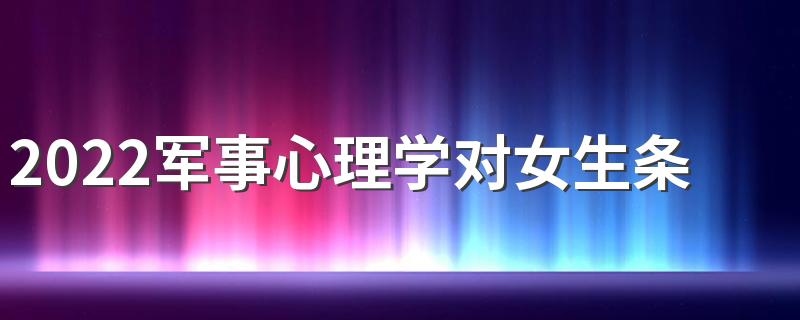 没有特别的女生限定条件。女生想要考上军校其实不是看你的成绩是多少分,而是要看你的分数排名,也就是说在本年度报考军校的女生中挑选,就要看你的成绩和综合素质是否有竞争力了。