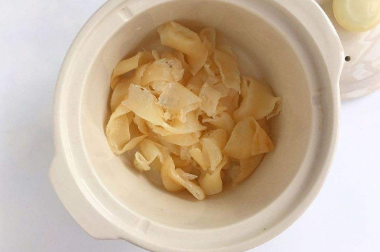 1、干鱼胶要泡发24小时。将干鱼胶浸泡在水中24小时,中途需要换水2~3次,干鱼胶浸泡至变软后,再用清水将干鱼胶冲洗干净。