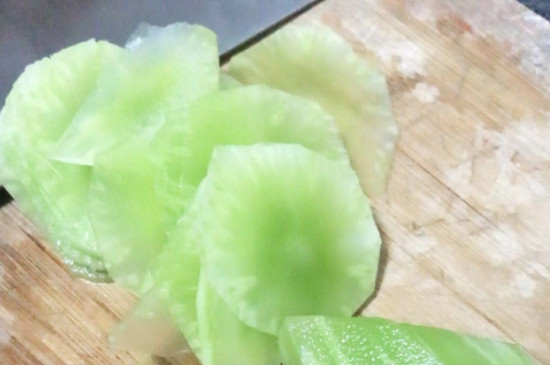 将莴笋削掉皮后切片备用,注意莴笋片最好切薄一点,这样腌制的时候会比较入味。然后将蒜瓣切碎,2~3颗蒜瓣就可以了,注意莴笋是比较硬的蔬菜,削皮时小心削到手指。
