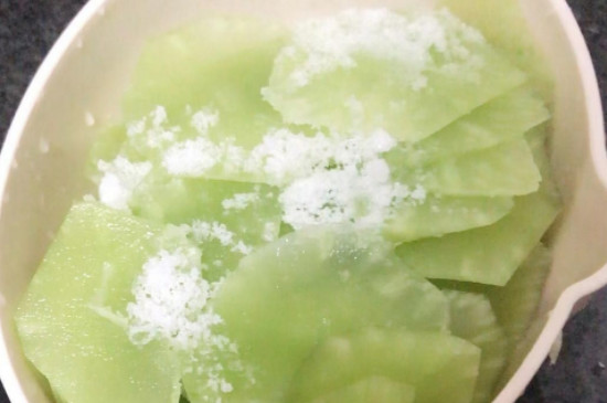 把莴笋放入洗菜盆中,用大约50克盐进行腌制,盐的多少可以根据莴笋的份量来决定。腌制大概5分钟左右后将水分控干,注意腌制的时候盐一定要搅拌均匀,避免食用时味道不均匀。