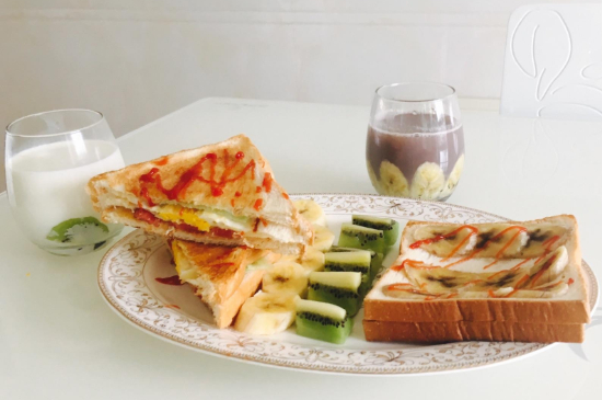 首先准备好需要的食材,吐司面包片、鸡蛋和火腿等。然后将电饼铛打开预热,再取鸡蛋2个,在锅中加入少量的油,将鸡蛋慢慢的摊匀后,撒上少许细盐。接着将火腿煎炸熟,把弄好的食材平铺在吐司上,放入微波炉加热1分钟即可。
