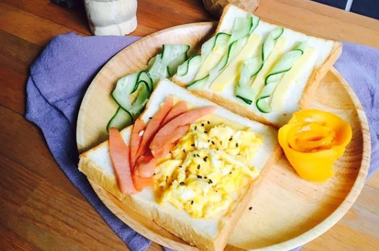 吐司取出,将做好的鸡蛋和火腿放到吐司上面,再撒上一些芝士碎和芝士条放到微波炉中热1分钟即可食用。也可以根据自己的口味加上生菜等其他蔬菜,再刷上一层酱料。