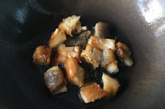 将锅清洗干净,开火把水分蒸干,然后在锅中加入油,开火将油烧热。将沥干的鱼块放入锅中,小火煎至两面金黄。