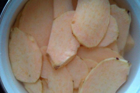 先把红薯全部浸泡在盐水里洗干净,将红薯洗干净之后捞出沥干,把红薯去皮并切成片备用,再把切好的片放入水里浸泡。