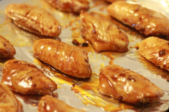 将鸡翅放在烤盘上摆好,先用中高火加热三分钟之后再调整为中小火,加热五分钟之后取出鸡翅翻面继续加热,最后加热十分钟即可食用。