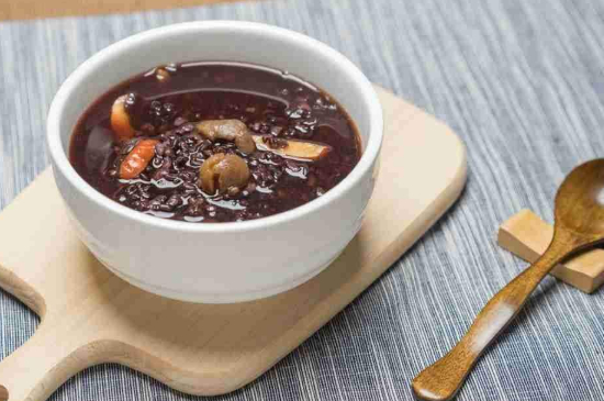 首先将黑米粥洗净,然后浸泡3小时以上,让黑米变软。再在锅中加入适当的清水,将泡好的黑米放进去,先用大火烧沸,再改用小火熬煮1小时,过程中需要不停的去进行搅拌。粥熬煮浓稠时,放入红糖调味,再煮3~5分钟,即可食用。