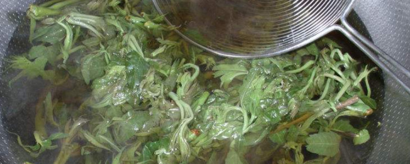 烹饪香椿煎蛋的时候香椿要焯水,因为香椿内含有大量的亚硝酸盐,焯水可以去除一部分亚硝酸盐,而且还能减轻香椿的味道。给香椿焯水前,应该先把香椿浸泡在盐水里,这样能清洗灰尘和杂质,而且烹饪出来的香椿口感十分鲜嫩。