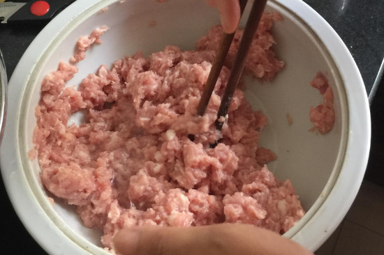 2、将五花肉洗干净之后切成碎末,加入腌制的鱼肉糊糊中,注意这里的窍门是加入一些姜末,这样可以去除部分腥味。继续顺时针把糊糊搅拌均匀,一直搅拌到肉变的非常粘稠为止。