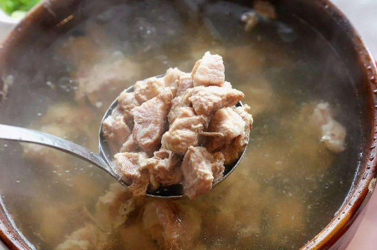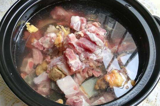 4、将汤汁和猪肉一起放入高压锅中,加入高汤或者开水即可开始熬煮,中小火熬煮10~20分钟即可。注意这里的窍门是,如果提前用热水焯过猪肉,可以减少熬煮时间避免猪肉煮老。