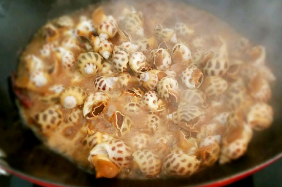 4、将汤汁熬煮五分钟之后煮沸,加入适量的清水把汤汁熬开,倒入花螺进行焖煮,烧开汤汁后煮三分钟即可出锅,烹煮时间不要过长,以免把螺肉煮老了。