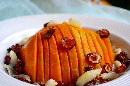 准备食材如糯米、南瓜、红枣、糖、莲子、银耳等,将所有食材准备好之后清洗干净,把食材摆放在盘子里和糖搅拌均匀。蒸南瓜的窍门就是把南瓜放在最上面,这样煮出来十分香甜可口,一般蒸煮时间控制在20分钟左右。