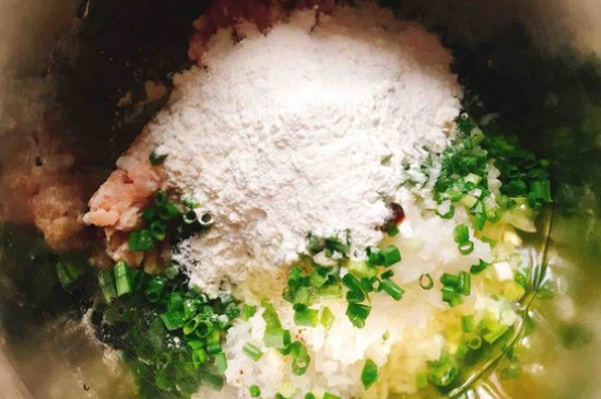 肉馅放入盆内,再加入白萝卜末、葱花、盐、黑胡椒粉、料酒、耗油、植物油、面粉和蛋清,同时将这些材料混合搅匀。
