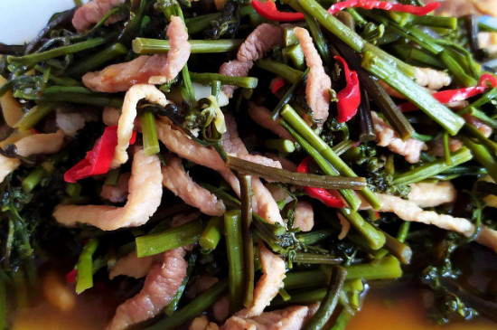 蕨菜炒肉是比较常见的农家吃法,这种吃法同样需要先将蕨菜洗净并焯水,之后再将五花肉与蕨菜一起炒制即可。而蕨菜其实是一种山野菜,与肉进行搭配能够保证营养更加均衡。