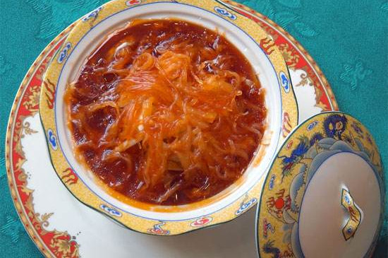 准备一些食材,如干贝、火腿、葱姜蒜、糖、淀粉等,将鱼翅取出来化冻,并且用冷水浸泡30~48个小时,期间早晚都需要换一次水。用热水焯一遍鱼翅,再加入干贝、清汤煮开,最后倒入调味品即可出锅,淋上勾芡后用火腿丝点缀。