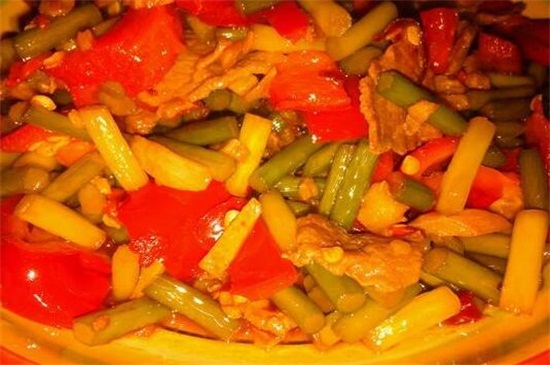 待肉片腌制好后就可以下锅翻炒,最好尽量的多放点油,炒熟后就将肉片捞起来,再将辣椒放进入翻炒,之后再加入肉片,再放入适量的盐、生抽等调料,但不要提前放盐,否则就会让肉片里面的水分流失。