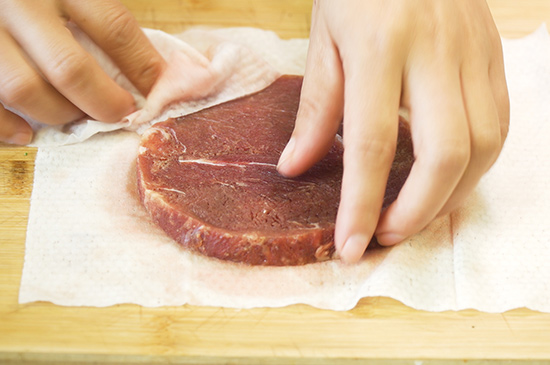 1、西红柿切块,西兰花切小朵,将牛排拿出静置在厨房纸上10分钟,再将牛肉表面水分吸干。