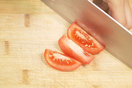 1、洋葱切片,西红柿切块,将牛排拿出静置在厨房纸上10分钟,加入微量的盐,